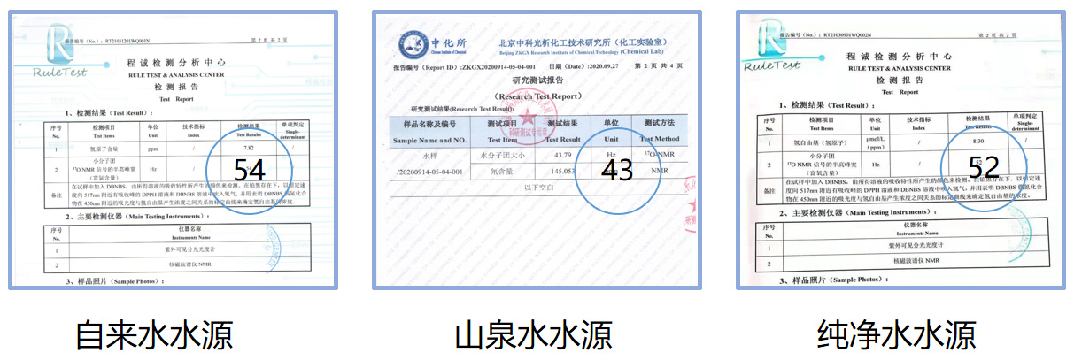 玖龙氢氢原子水小分子团测定如下: